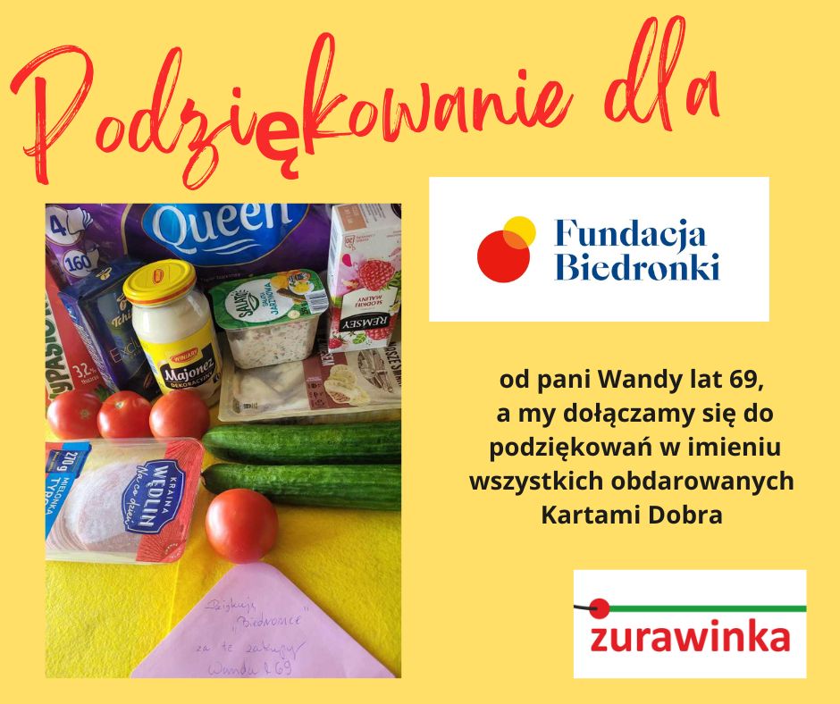 Cieszymy się ogromnie, że po raz kolejny Stowarzyszenie „ŻURAWINKA” zakwalifikowało się do udziału w tym programie pomocowym i znalazło się w gronie wybranych 44 organizacji pozarządowych z całej Polski. W aktualnej edycji, dzięki otrzymanym „Kartom dobra”, możemy wspomóc aż 60 osób, wśród których są seniorki i seniorzy, opiekunowie rodzinni oraz osoby z niepełnosprawnością.